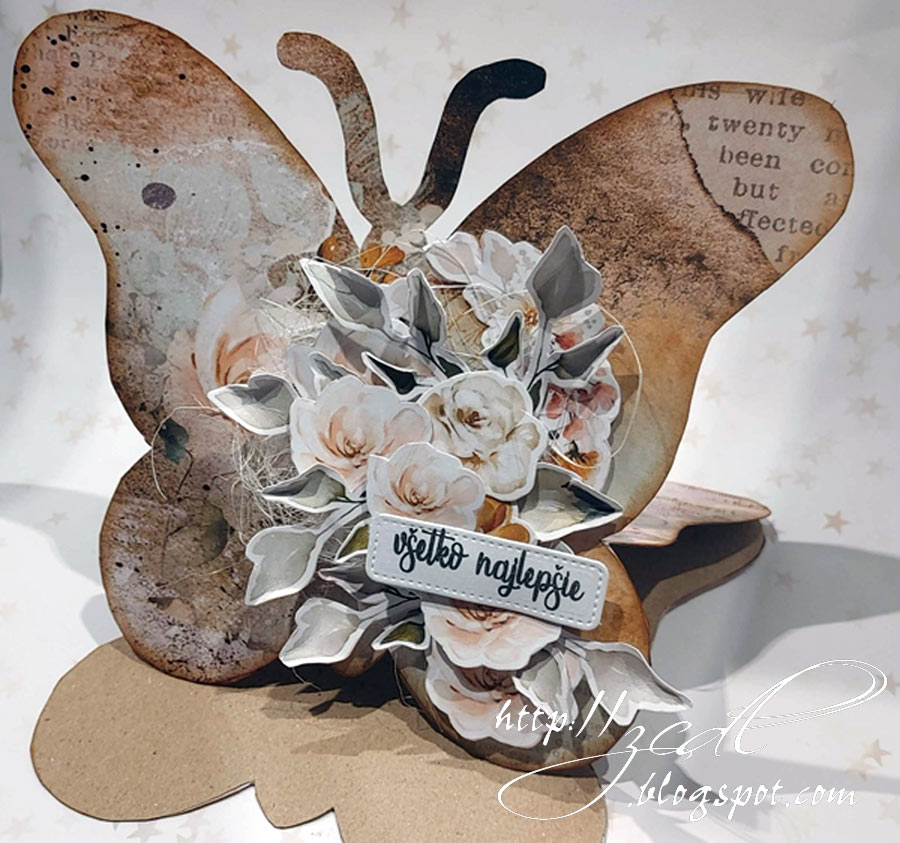 V poslednom čase okolo mňa poletovalo viac motýľov. Buď bielych, ale aj s krásne sfarbenými krídlami. Tak som bola taká rada....že sa moje obľúbené motýle vracajú, že som si jednu takú motýliu pohľadnicu vyrobila.